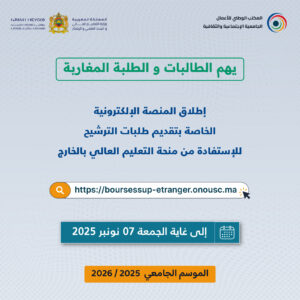 Catégories Accueil Bourse et AMO يهم الطالبات و الطلبة المغاربة Auteur de l’article Par bourses_Amo Date de l’article 14 octobre 2025 ← إعلان خاص بتسلم بطاقة الطالب → إعلان خاص بطلبة السداسي الأول الأستاذ نور الدين أشحشاح